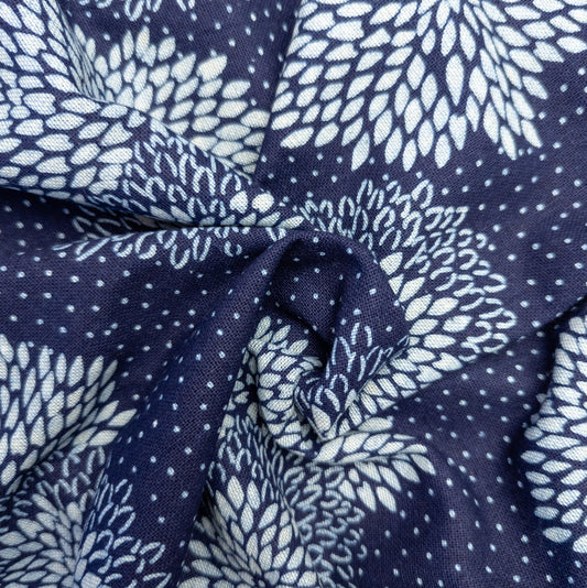 Indigo Peony Print Fabric - Japanese Quilting Fabrics