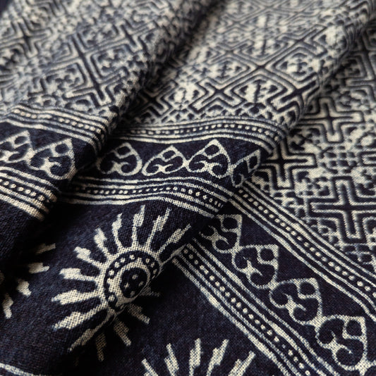 Handwoven Hill Tribe Batik Fabric | Indigo Rising Sun | 36cm Wide