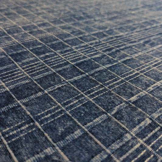 Dark Blue Stonewash Fabric - Woven Checked Indigo
