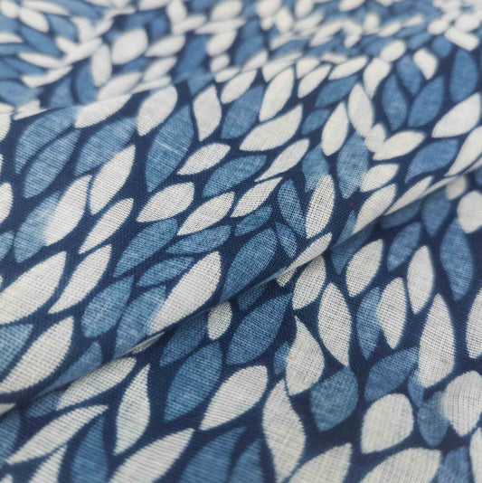 Leaf Print Indigo Fabric | Soft Double Gauze | 118cm