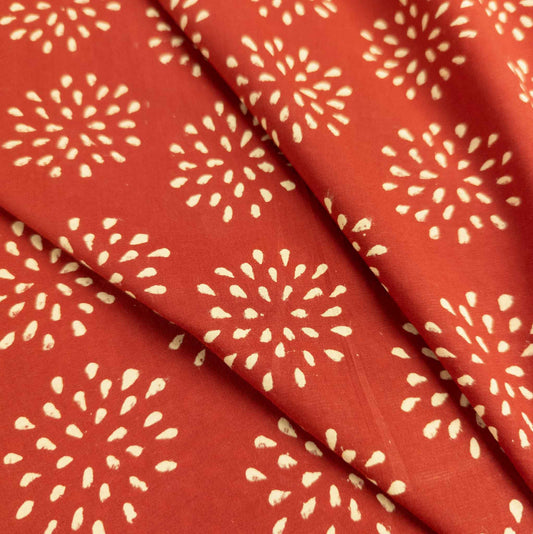100% Cotton Block Print Fabric - Red Dandelion | Hand Printed in India | 112cm