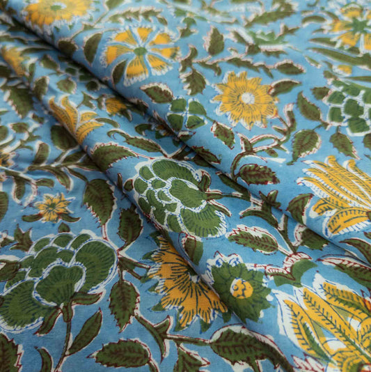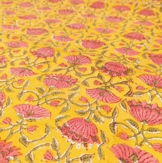 Bright Floral Indian Block Print Fabric - 100% cotton | 112cm Wide