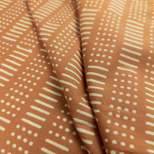 Indian Hand Printed Fabric - Terracotta | 100% Cotton Block Print | 112cm Wide