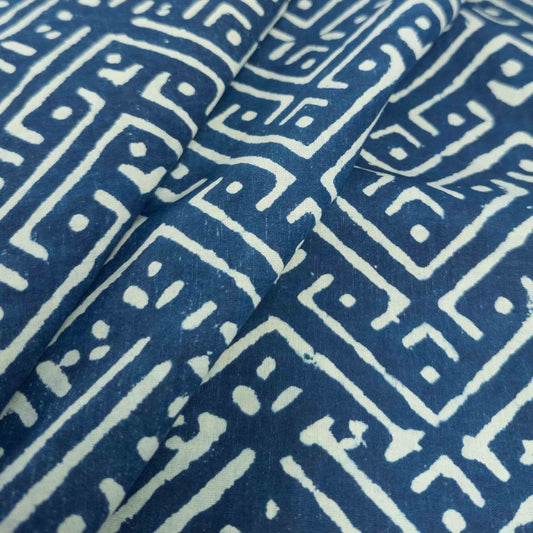 Indian Block Print Fabric - Indigo Cotton | Authentic Mud Resist Dabu | 112cm Wide