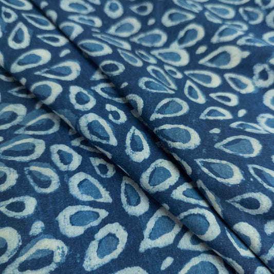 Indian Dabu Fabric - Indigo Raindrops | Block Print Cotton | 112cm Wide