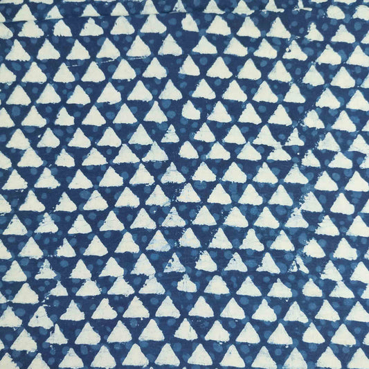 Indian Dabu Cotton - Indigo Triangles | Block Print Fabric | 112cm Wide