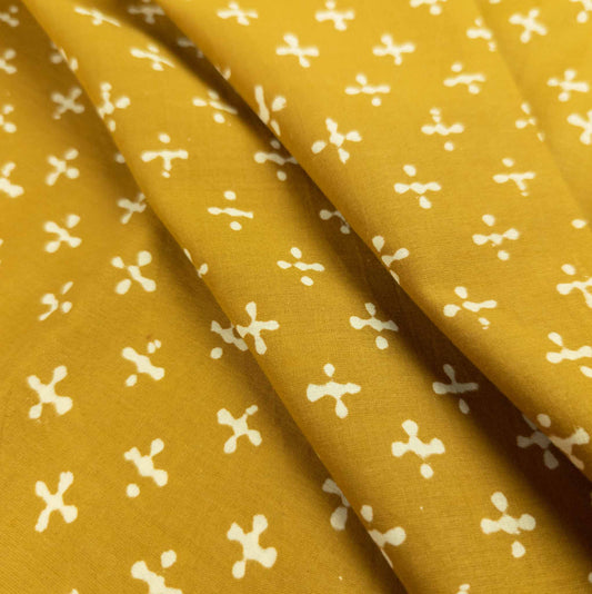 Hand Block Printed Fabric - Yellow Crosses | 100% Cotton | 112cm