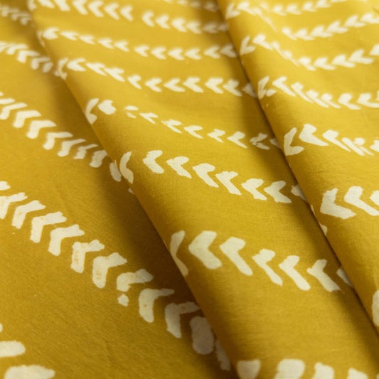 Indian Block Print Fabric - Yellow Chevron | 100% Cotton | 112cm