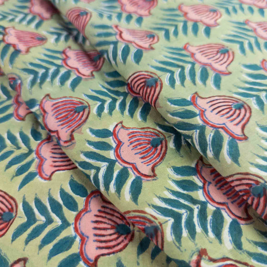 Floral Block Print Fabric | Indian Hand Printed Cotton | 112cm