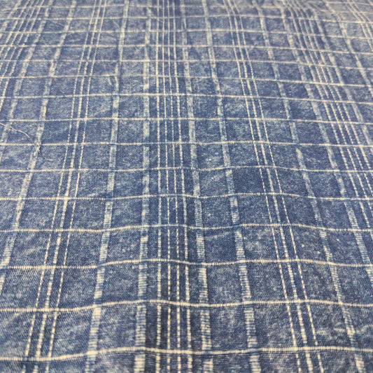 Dark Blue Stonewash Fabric - Woven Checked Indigo