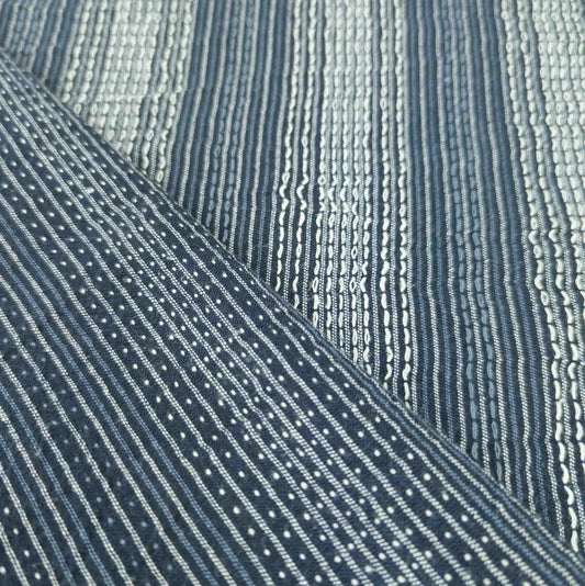 Indigo Sashiko Fabric | Striped Stitched Cotton | 118cm Wide