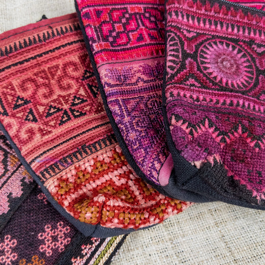 The older antique pieces of hill tribe embroidery which used to be so common are definitely rare nowadays, but the craft of embroidery itself continues within the tribes and we’re committed to supporting the artisans who create this hill tribe embroidery so that the tradition is continued.