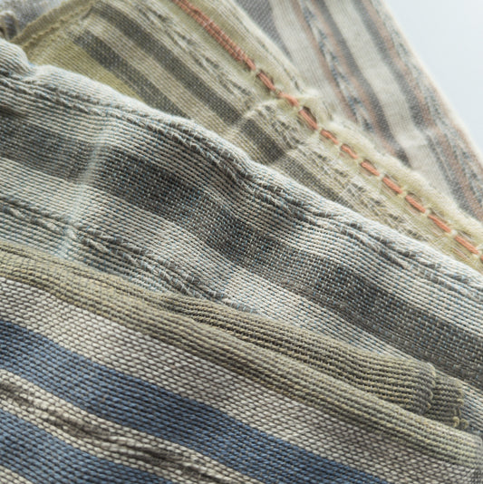 There are different varieties of silk cocoons: white silk cocoons, and yellow silk cocoons. The white silk cocoons are smoother in texture, and are found predominantly in Japan or China, whereas the yellow silk cocoons are native to Thailand and rougher in texture. This gives the silk a wonderful wabi-sabi, “slubby” texture.
