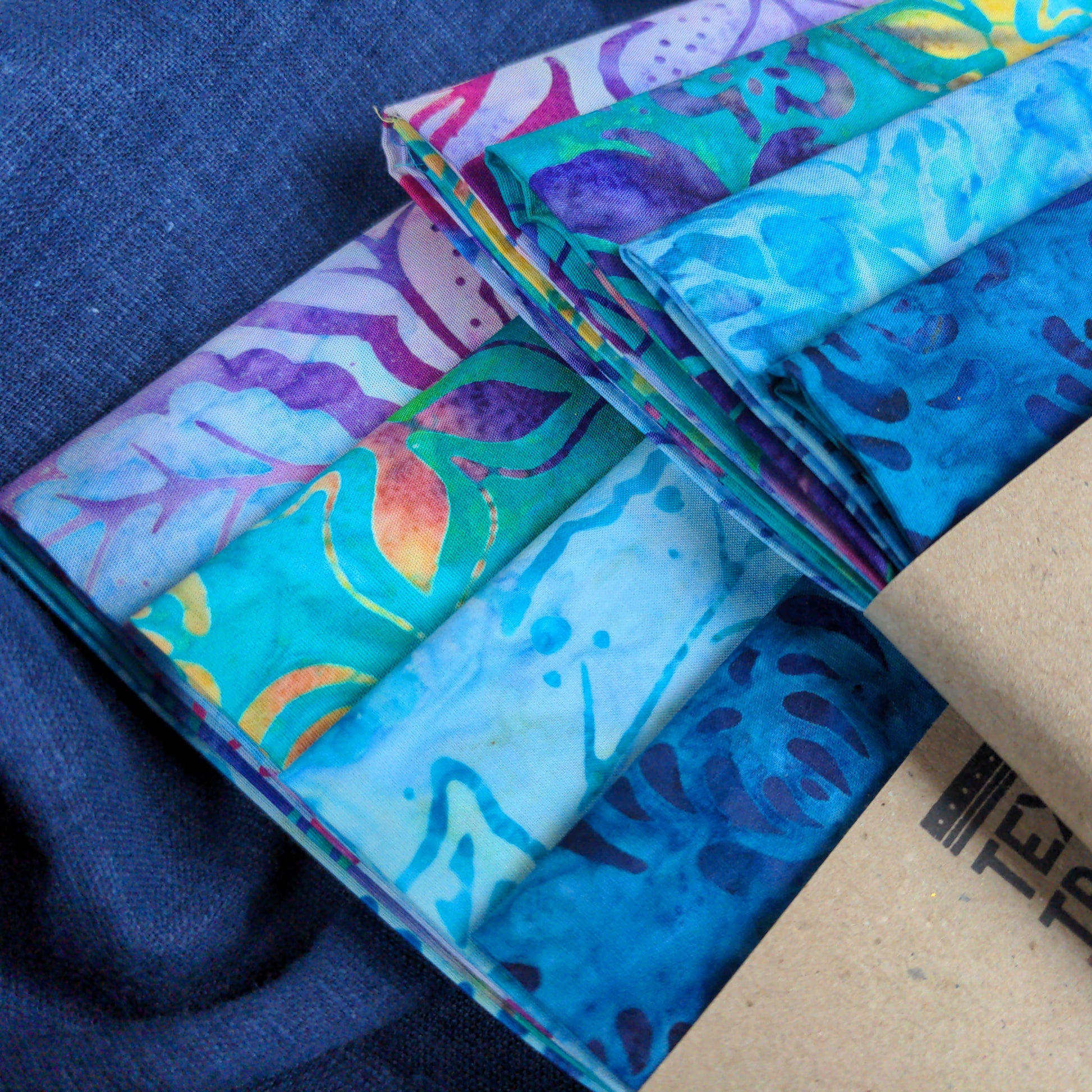 Bring the beauty of nature into your projects with our Bright Botanical Batik Fat Quarter Bundle. This vibrant collection features four stunning pieces of modern batik fabric, each showcasing a unique and eye-catching nature-inspired print.