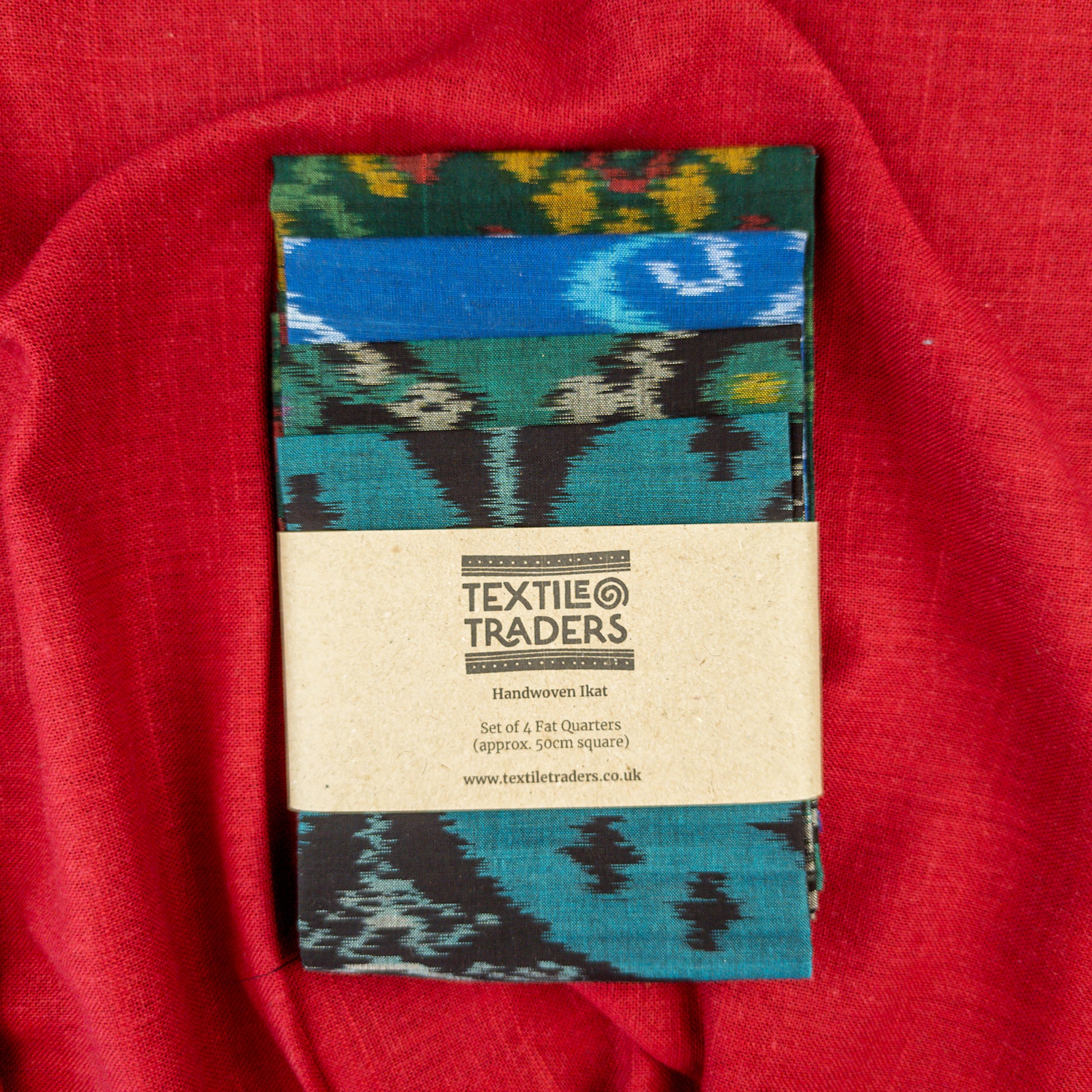 Sample a selection of our traditional ikat fabric with this blue and green fat quarter set. This curated collection features four stunning pieces of handwoven ikat fabric, each showcasing the unique skills of traditional Indonesian weavers.