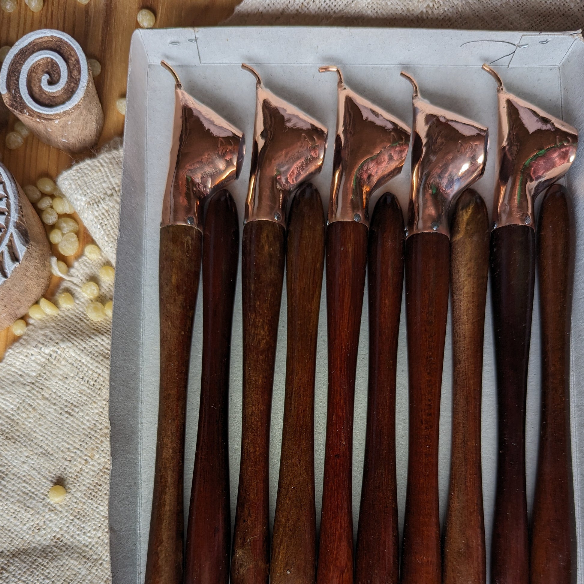 Our handcrafted cantings feature a strong copper bowl and an ergonomically shaped handle made from recycled teak. Our customers say that these are the easiest cantings they've ever used - you might not be as practiced and precise as the Javanese, but you can get a head start using the best cantings available in the UK!