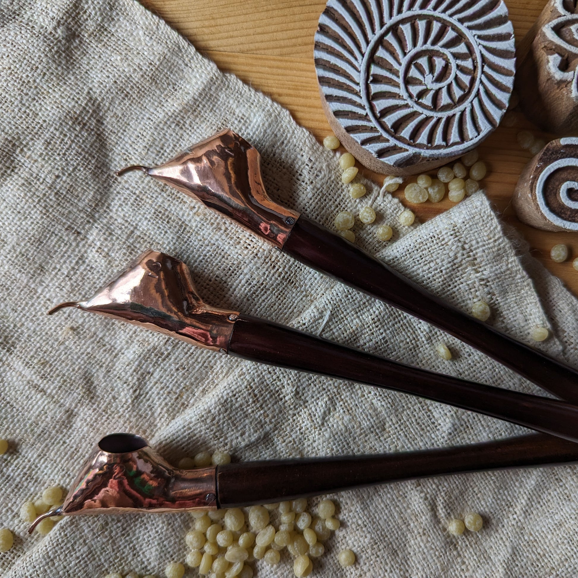 Our handcrafted cantings feature a strong copper bowl and an ergonomically shaped handle made from recycled teak. Our customers say that these are the easiest cantings they've ever used - you might not be as practiced and precise as the Javanese, but you can get a head start using the best cantings available in the UK!